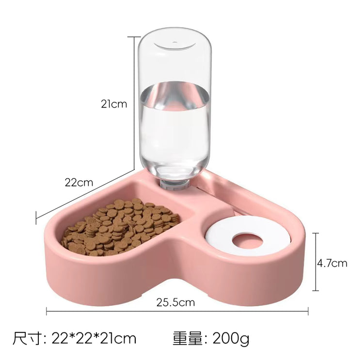 This heart-shaped double bowl provides a clean and organized feeding area for your pet. The automatic water dispenser keeps fresh water available, while the detachable partition makes cleaning effortless. Its steel spring mechanism ensures even water flow, and the replaceable bottle feature allows compatibility with standard 28mm beverage bottles.